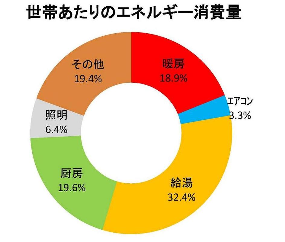 資源エネルギー庁の省エネルギー対策課が実施した平成22年の調査結果です。 住宅で、最も多くのエネルギーを注ぎ込んでいるのは、給湯です。 普通の生活で、お湯を作るのに最もエネルギーを消費しています。 全体の32.4%が給湯。 次にエネルギーを食っているのが、厨房です。 台所関係で、全体の19.6%のエネルギー消費されています。 その次が暖房の18.9% 次のその他=家電のことで、19.4% そして、照明が6.4%。 最後がエアコンの3.3% エアコンは冷房と暖房の区別が無いので、半分づつぐらいと考えると・・・。 冷房に使用するエネルギーって1.7%程度ってっことになります。 では、何故、夏の節電でエアコンが取りざたされるか・・・。 その話は、ちょっと次回にしますね^^ このエネルギー分布を観ますと、エコ住宅に出来る事が見えてきます。 1.給湯(+100℃位までのエネルギー) 高性能給湯器に期待。 太陽熱給湯も良いが、配管が長くなる欠点もある。 給湯配管を短く、しっかり保温するという地味な対策が効果的。 配管を短くすると、水道水の消費も抑制できる。 2.厨房(+1000℃位までエネルギー) 高性能厨房機器に期待。 3.暖房(+20℃位のエネルギー) 高気密高断熱で温めた空気を逃がさないことが大事。 熱損失の少ない換気が効果的。 地中熱や太陽熱を活用する設計が有効。 4.家電(電気エネルギー) 省エネ家電に期待。 5.照明(電気エネルギー) 昼光を上手く取り入れ日中は照明不要の設計が有効。 最近話題のLEDなどを採用。 6.エアコン(電気エネルギー) 遮熱性能を高めた設計が有効。 何と言っても、風通しの良い設計が一番。 熱損失の少ない換気が効果的。 地中熱や太陽熱を活用する設計が有効。 バタバタっと書きましたが、建築に出来る事は案外、安上がりで、恒久的です。 設備と違って、建築は、対応年数が長いので、最初に頑張りたいですね。 エネルギー消費の少ない住宅が、今後の住みよい住宅と考えます。 | |